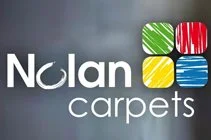 Nolan Carpets logo with four colorful carpet swatches in green, red, yellow, and blue.